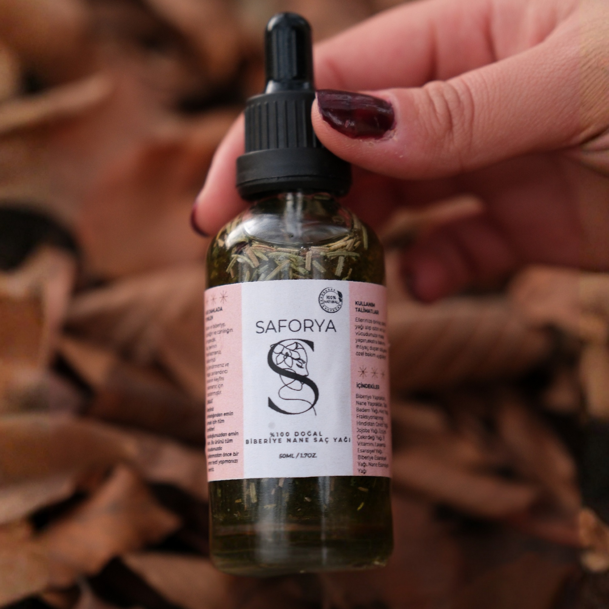 Saforya %100 doğal Biberiye & Nane Saç Yağı, saç derisini rahatlatır, kökleri canlandırır ve saçların doğal gücünü geri kazandırır.