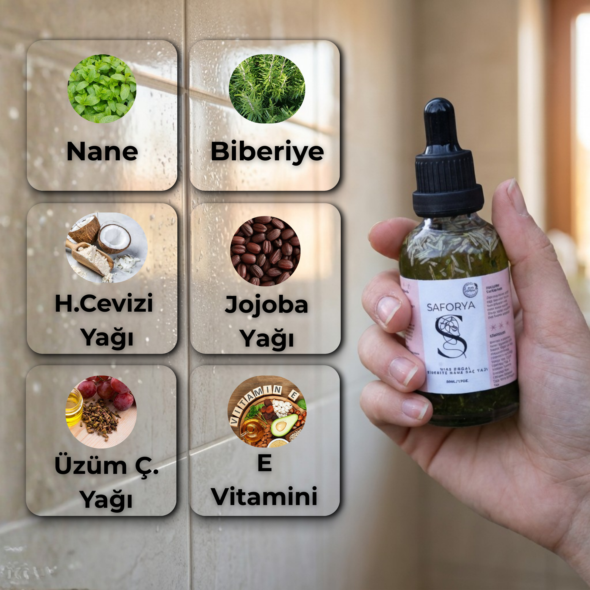Saforya Biberiye & Nane Saç Yağı, köklere doğrudan etki eder